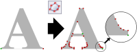 Convert text into curves to modify the shape, color and outline of individual characters. The text is no longer editable.
